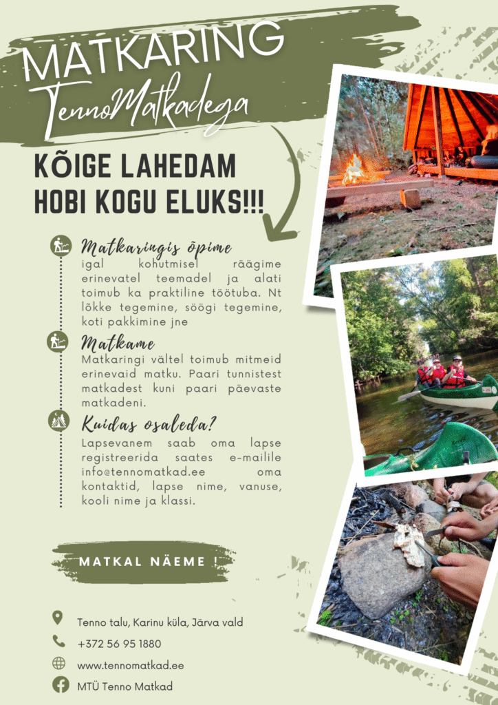 Soovime osalejaid viia enamikel kordadel koolist välja ja võimalusel toimub ring Tenno Matkade Laagriplatsil.